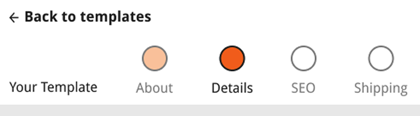 A glimpse at the refined templates flow. The updated step wizard shows the user exactly where they are in the flow. This is the “Details” page.