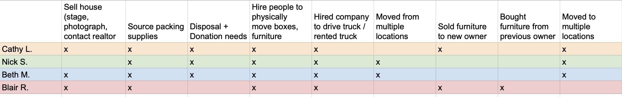 In order to gain a full comprehension of the needs of people moving, we needed to conducted interviews with a number of people who had recently been involved with a move