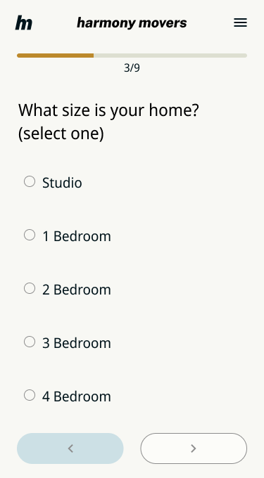 One major piece of information that came out of the usability testing was that people didn’t understand the “quantity of belongings” page. Many users commented that it was a subjective way of determining an objective quantity.